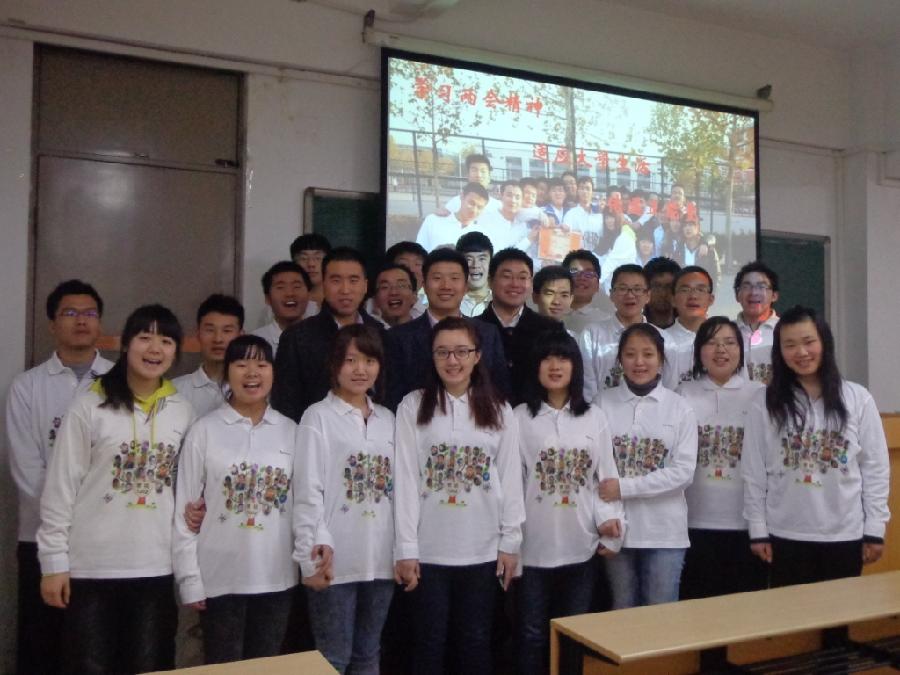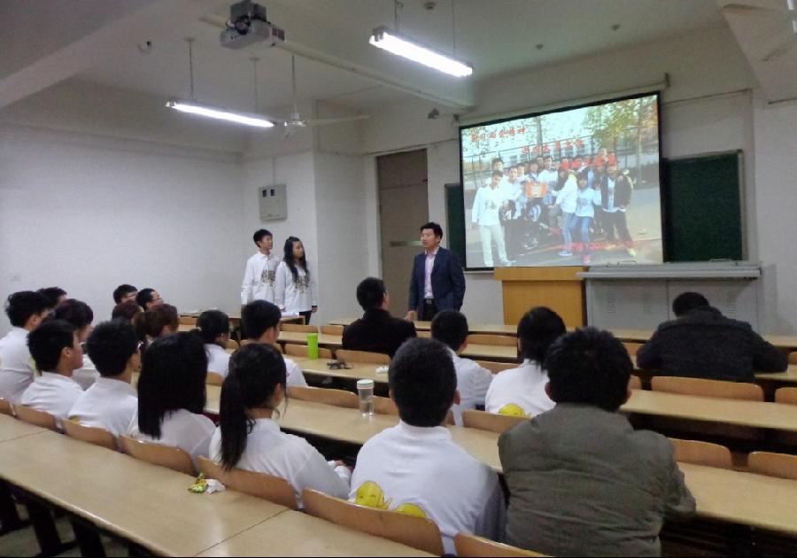 为响应学校2013年度示范性优秀班集体创建活动的号召,切实帮助同学们学习、宣传、贯彻两会精神,尽快适应大学生活,3月22日上午,经济与管理学院市场营销1202班在教四楼D205室召开了题为“学习两会精神,适应大学生活,传递时代正能量”的主题班会。经管学院党总支副书记赵军伟老师、班主任张凯老师及辅导员张灿飞老师应邀参加了本次班会。